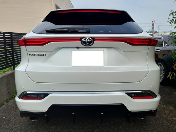 ネットショップでの購入ということで、商品を実際に見ることができない点に不安はありましたが、スタイルの良さが決め手となり、今回こちらの商品を選びました。実際に手に取ってみると、イメージしていた通りの仕上がりで、取付後のスタイルにも大変満足しています。ハリアーの雰囲気が一段と引き締まり、理想に近いカスタムができました。品揃えが豊富な点も魅力で、今後はホイールのカスタムも検討しています。